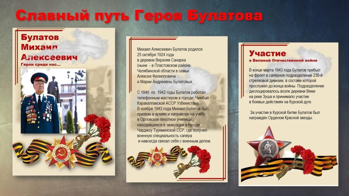 Булатов Михаил Алексеевич командир отделения 369-го отдельного сапёрного батальона 235-й стрелковой дивизии 43-й армии 3-го Белорусского фронта, старший сержант. После войны – заместитель командира мотострелкового полка по политической части – полковник.