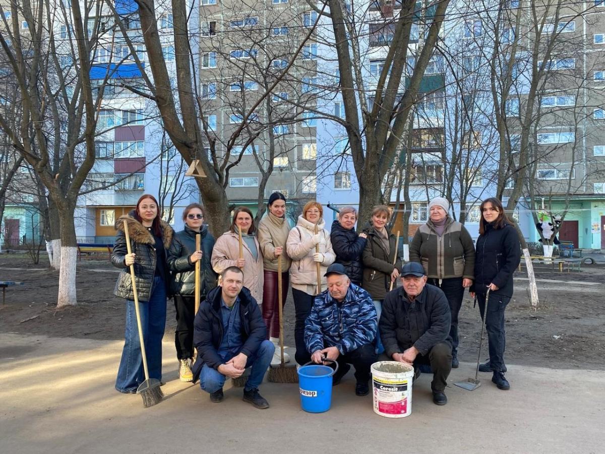 Хорошая солнечная погода, приподнятое настроение и дружная работа стали залогом чистоты и активным началом трудового дня.