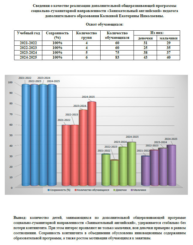 Результативность программы «Занимательный английский» пдо Колкина Е.Н.