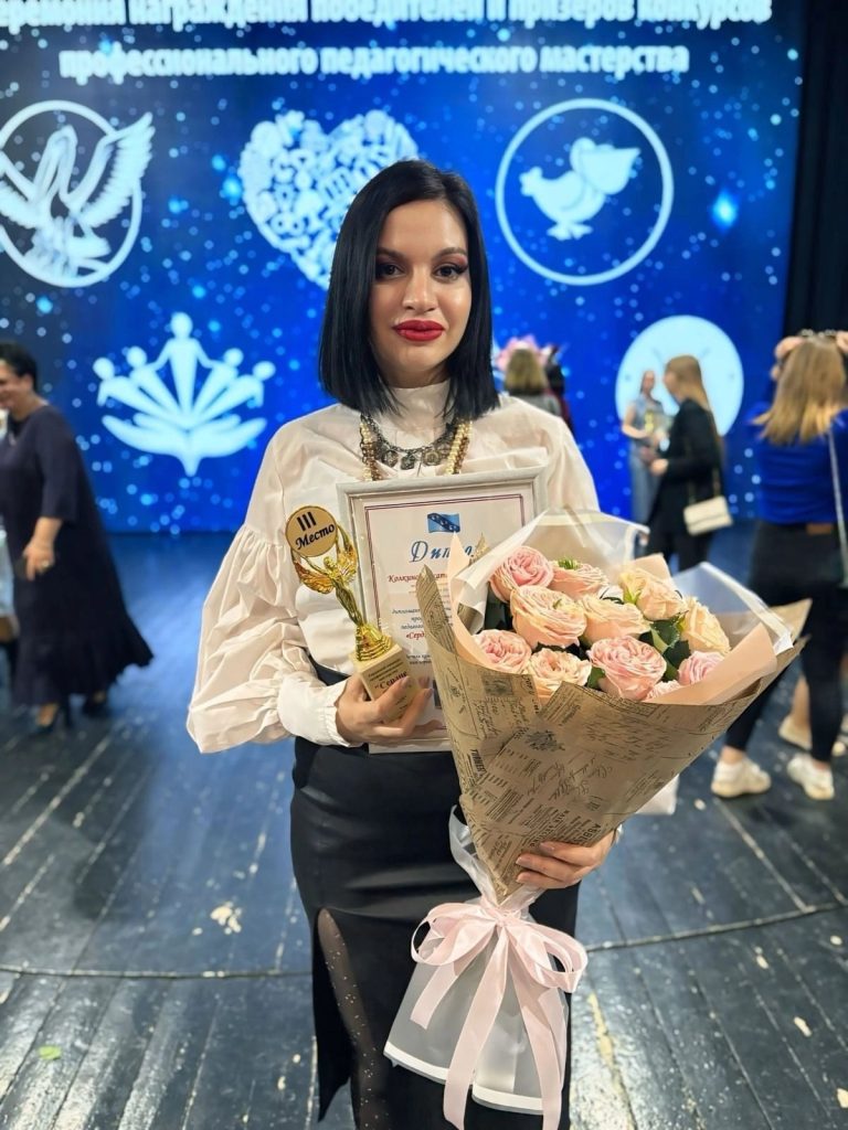 Заслуженную награду получила Колкина Екатерина Николаевна, педагог английского языка Центра детского творчества. Она заняла почетное третье место в конкурсе профессионального мастерства «Сердце отдаю детям — 2025».